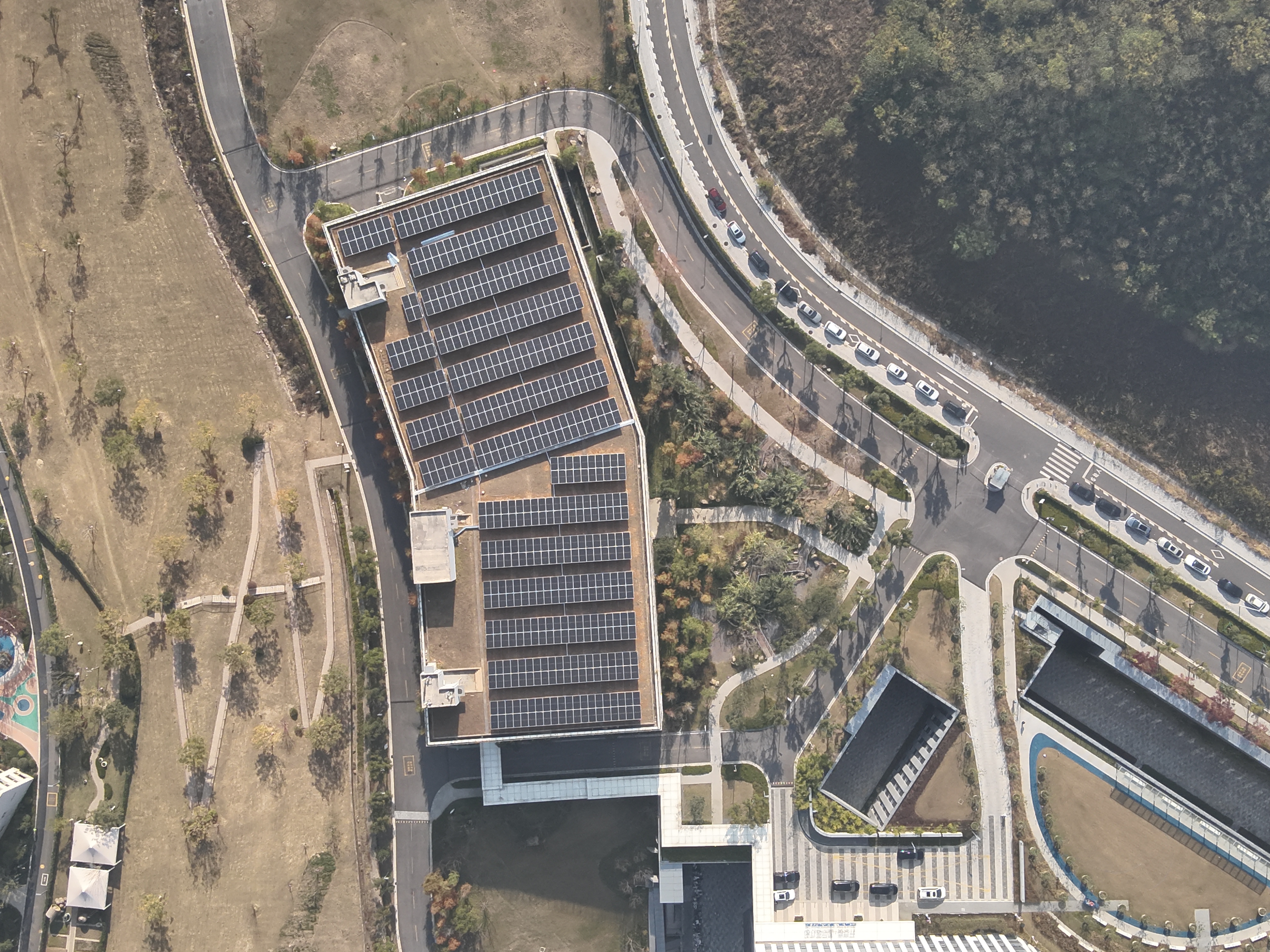 該項目位于江蘇省南京市棲霞區(qū)靈山北路188號,總裝機容量1.88MWP,安裝面積覆蓋8113㎡水泥屋頂及彩鋼瓦區(qū)域。項目采用業(yè)主自投模式,自發(fā)自用余電上網(wǎng)。美的新能源專業(yè)團隊針對醫(yī)療康養(yǎng)場景用能特性,選用2612塊720W高效光伏組件,搭配14臺110KW及4臺50KW光伏逆變器,構(gòu)建分布式光伏發(fā)電系統(tǒng),確保高效、穩(wěn)定、安全。施工時,團隊創(chuàng)新采用末端并網(wǎng)技術(shù)方案,既縮減施工周期與工程量,又對標美的新能源工程全流程標準及泰康集團工程管理規(guī)范,保障項目建設(shè)質(zhì)量與投運可靠性。